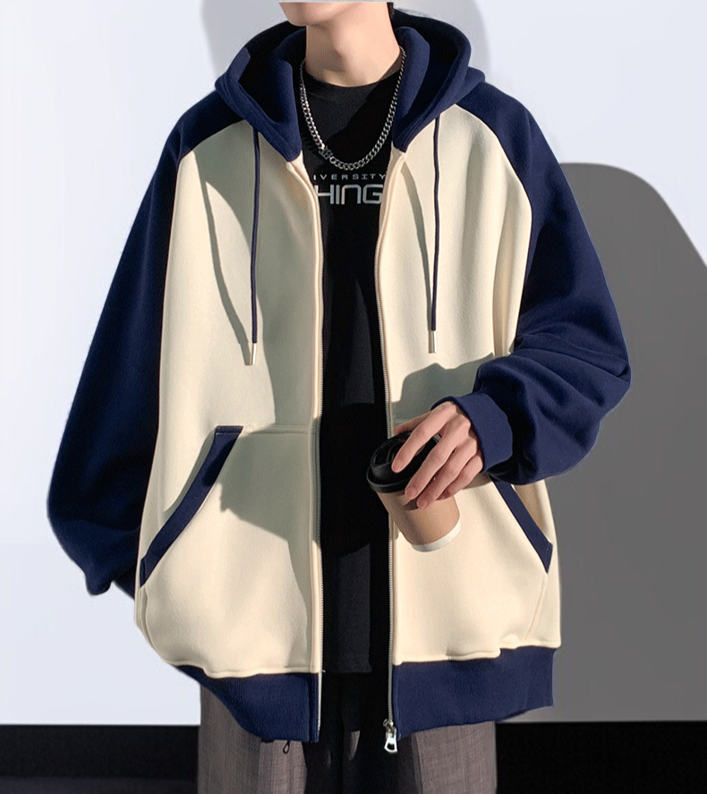 ヘビーステッチジッパーフード付きカーディガンセーター春と秋メンズトレンドルーズジャケットメンズカジュアルトップスジャケット